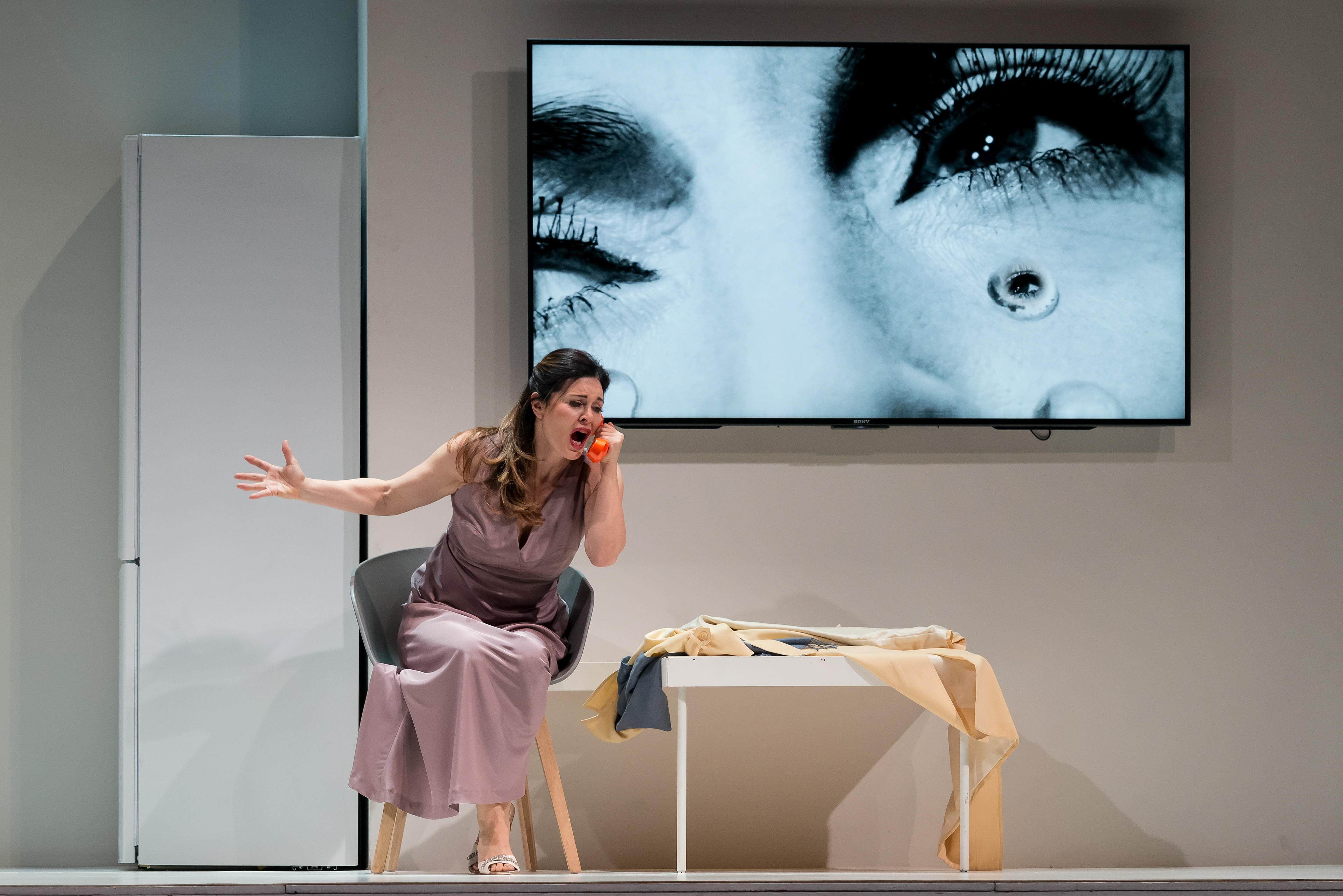 Production stills of « La voix humaine » (Poulenc) and « Il segreto di Susanna » (Wolf-Ferrari), directed by Ludovic Lagarde, conducted by Patrick Davin. © Opéra Royal de Wallonie 2016
